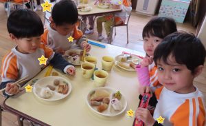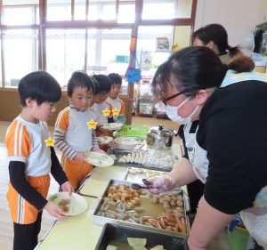 そらぐみ・つきぐみ・ほしぐみのお友だちは、昼食に『おでんバイキング』をしました。