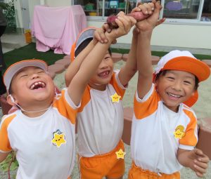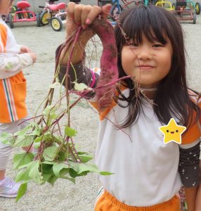 土を触って、さつまいもを引っこ抜いてみたり、土の中から虫の幼虫が出てきて驚いたり( ゚Д゚)…