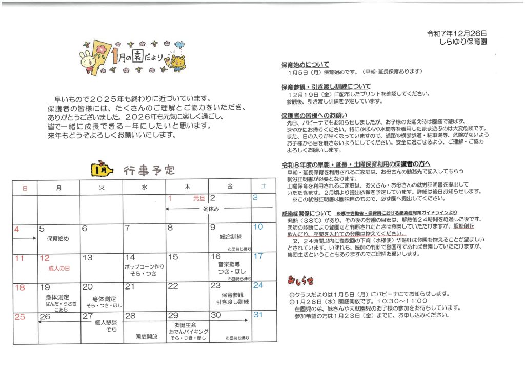 来年も、子どもたちが笑顔あふれる保育園生活となりますよう、職員一同頑張っていきたいと思います。2026年も皆様にとって、素晴らしい一年となりますように。