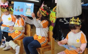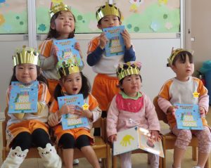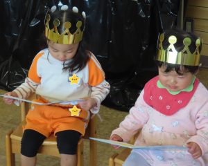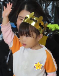 一人ずつ王冠を被って席に着き、とっても嬉しそうです‼